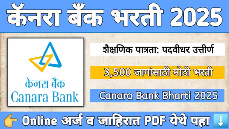 Canara Bank Bharti 2025: कॅनरा बँकेत 3500 पदांसाठी भरती | Canara Bank Recruitment 2025