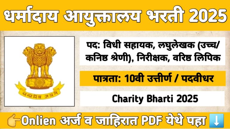 धर्मादाय आयुक्तालय भरती 2025 | Charity Bharti 2025 Maharashtra | Legal Assistant, Clerk, Inspector पदे